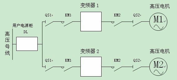 1、每臺變頻器均含有全套的QS1、QS2、KM1 、KM2