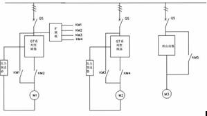 油田作業(yè)區(qū)供水泵站常共有三臺(tái)同一型號(hào)立式注水泵,二用一備。鄭州油田某一個(gè)注水泵站:電動(dòng)機(jī)額定功率75KW,額定電壓380V,額定電流140A左右,額定轉(zhuǎn)速2900轉(zhuǎn)/分鐘,額定頻率50HZ,絕緣等級(jí)F級(jí)。針對(duì)注水泵二臺(tái)工作一臺(tái)備用的實(shí)際工況,采用變頻器調(diào)速進(jìn)行恒壓供水時(shí)存在著一個(gè)用一臺(tái)變頻器還是用二臺(tái)變頻器的問(wèn)題。我們分別針對(duì)使用一臺(tái)變頻器還是使用兩臺(tái)變頻器不同情況進(jìn)行分析。